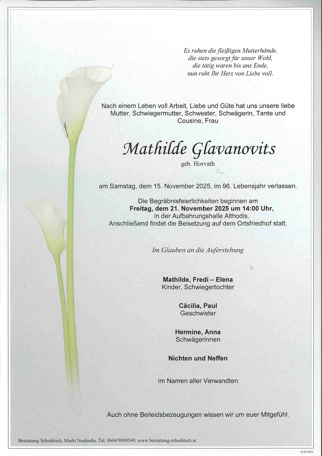 Wir bieten Ihnen nicht nur einen Ort des Gedenkens und der Erinnerung an geliebte Menschen, sondern auch die Möglichkeit, den Tod eines Angehörigen bekannt zu geben. Das Veröffentlichen einer Traueranzeige ist eine wichtige und oft schwierige Aufgabe. Hier finden Sie die aktuellsten Todesanzeigen und Parten aus der Region, die von Hinterbliebenen veröffentlicht wurden, um Freunde, Nachbarn und Bekannte über ihren schmerzlichen Verlust zu informieren.